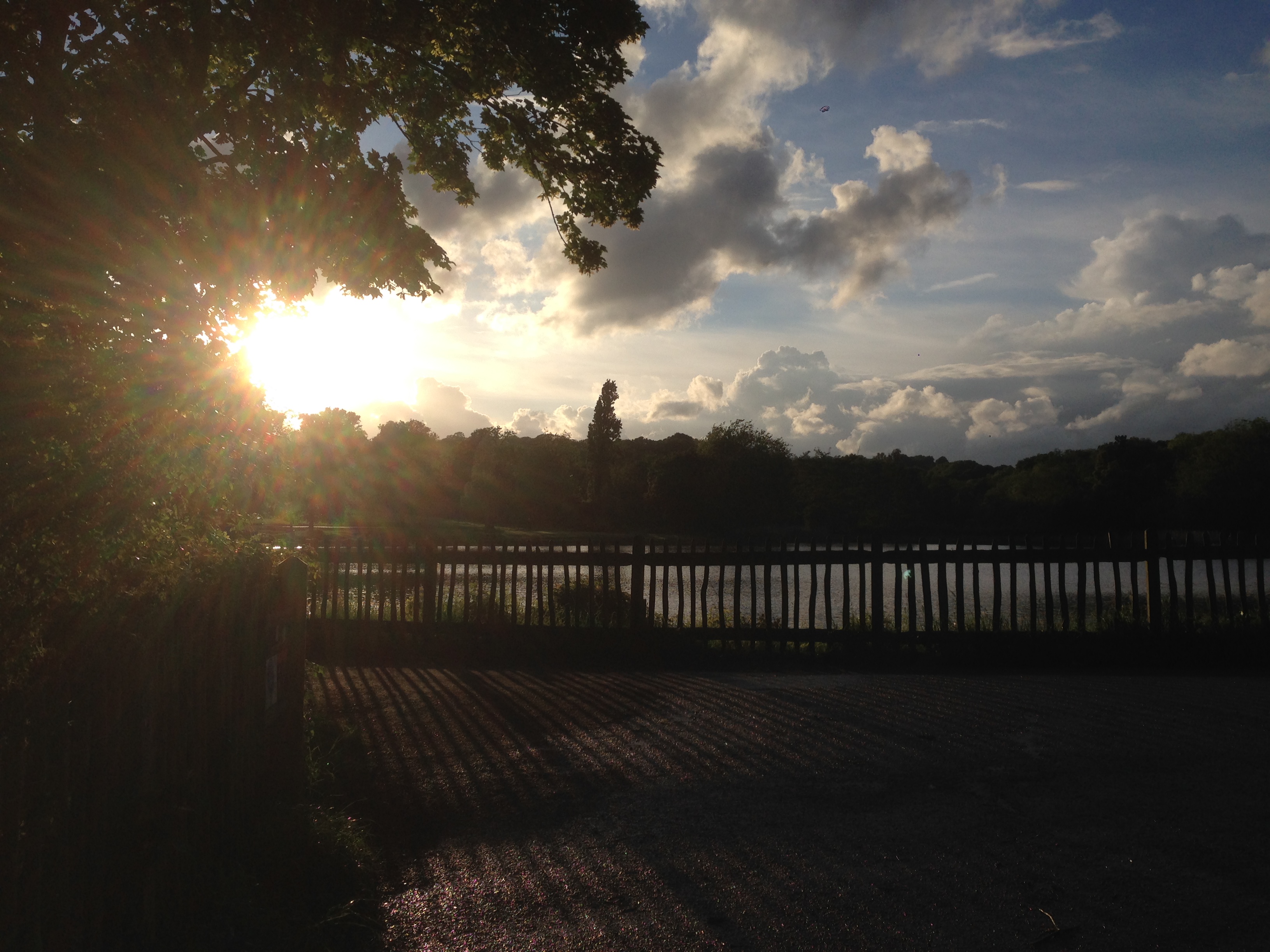 Almost twenty-four hours later and the thought remains of sky, cloud, sun and water. Sometimes the pond is gentle, green water and quiet. Last night it shouted “ELEMENTAL!” in a way that I can’t quite imagine ever being able to forget. To think, the drive over was in a storm so thick I struggled to see, and I was expecting water, on water, in water.