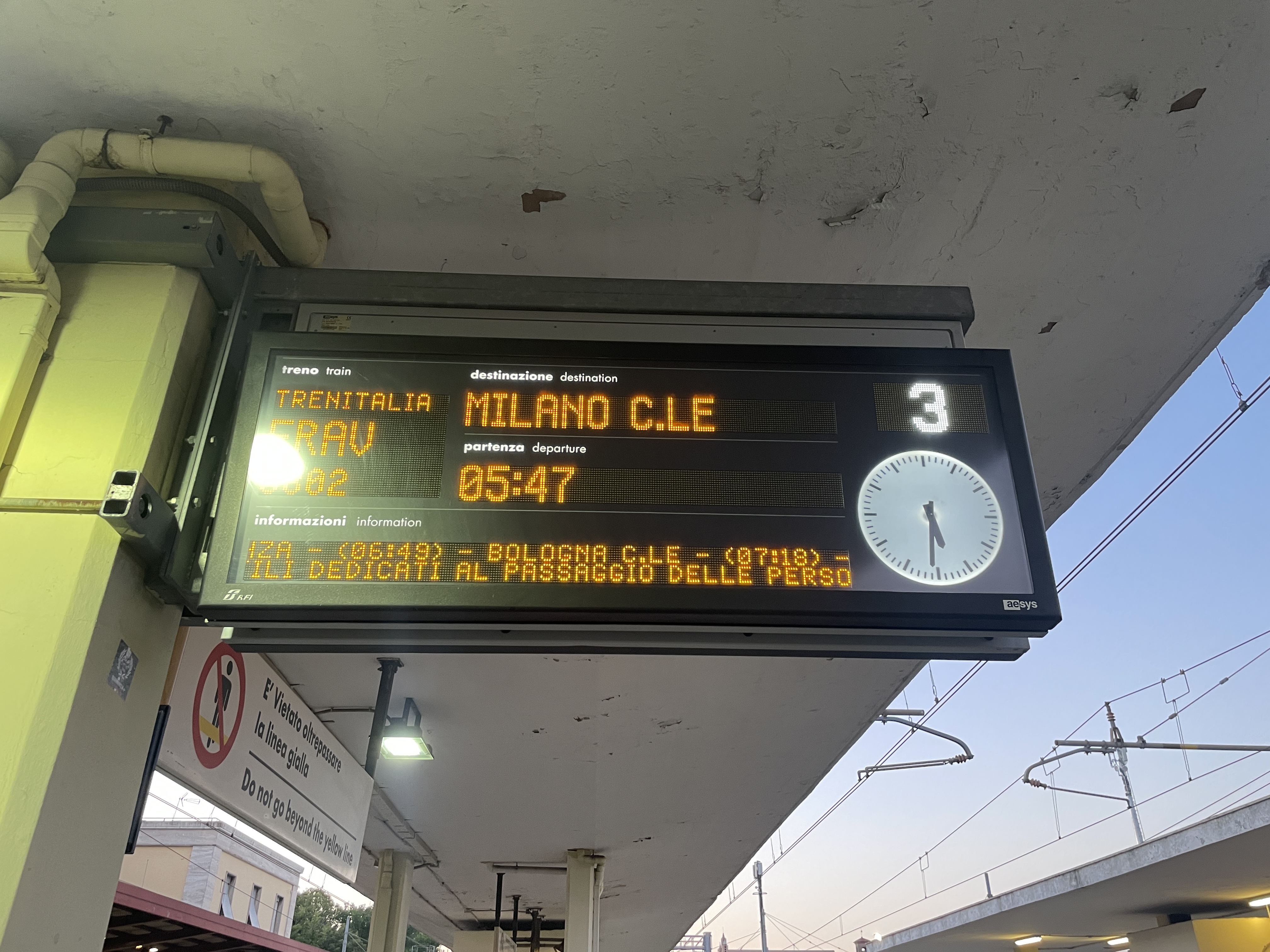 FR 8802 showed none of my sluggishness for so early on a Sunday. The buffet car was dishing up toasties and espresso doppo to not-home-yet clubbers and, as is compulsory on Italian trains, small groups of small nuns. As the nephew of not one but two nuns I always appreciate this enduring part of Italian life. Though I did appreciate the coffee more. For the first two hours of the journey we sped north along the littoral, first passing Rimini, still asleep after a party-hearty night, then crossing flat plains with the Adriatic on one side and the Apennines on the other. Mostly distant, occasionally handsome hilltowns of Emilia Romagna flashed by, too fast to properly work out which ones they were. At Bologna it felt like we entered northern Italy, platforms more crowded as Sunday morning advanced, and moving on to pass through Modena, Reggio Emilia, Picenza. I loved this train for the ground it covered, and how it didn’t dally even while running ahead of schedule.