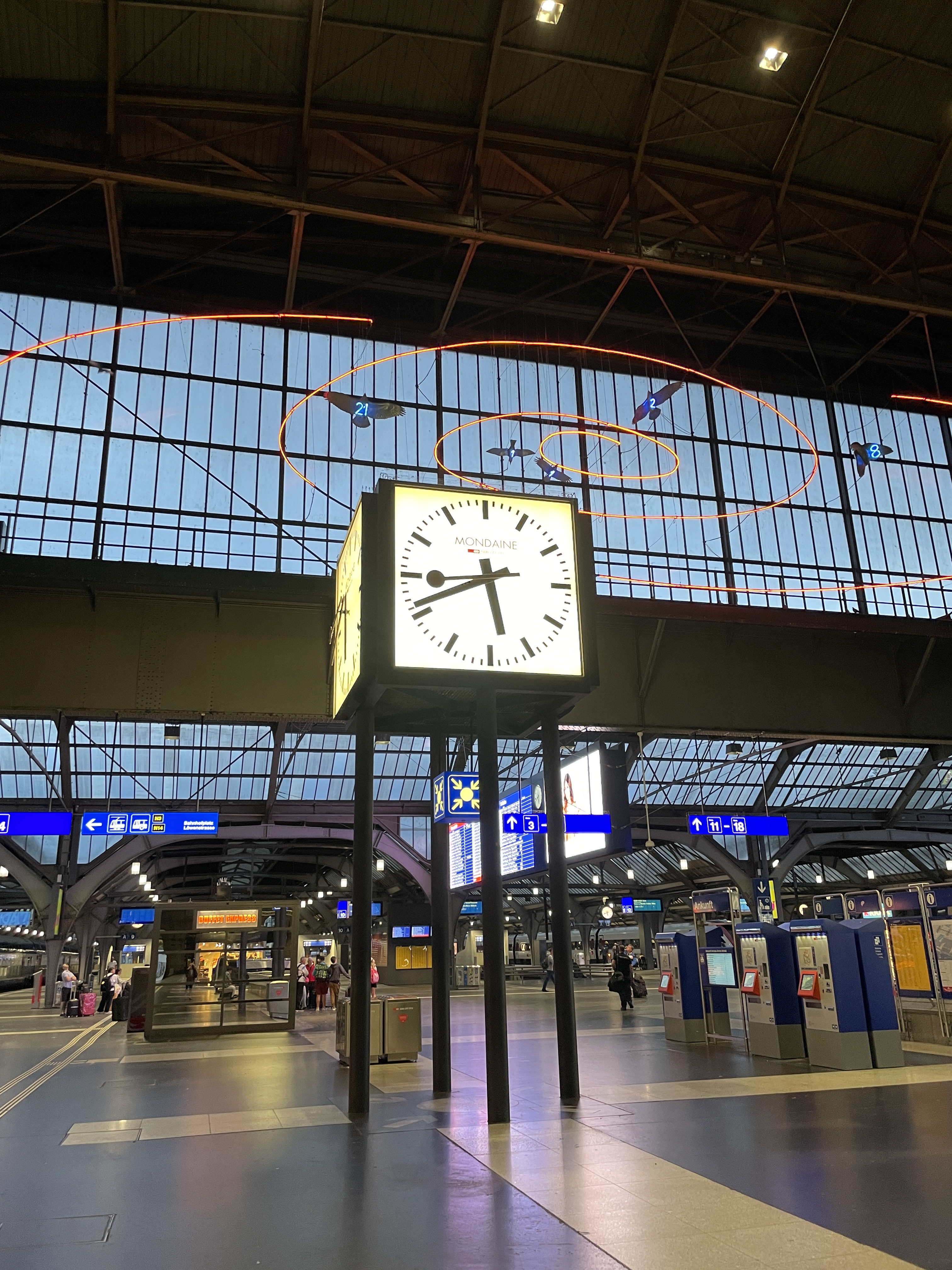 The evening was a walk through Zurich to the lake, which I’ve never done, and will never bother doing again. The lake isn’t even as nice as Geneva’s, and the Old Town such as it is was home to the tourist dumps I’d managed to avoid on every previous visit. Still, any guilt about my dinner was removed when I saw the size of the rosti portions most men were eating silently with their mute partners. There was time for one last don’t-know-when-I’ll-be-back swim before heading back to the cheap and cheerful (not often you hear that in Switzerland) Hotel Arlette, close to the river and the Hauptbanhof, and apart from wifi completely unreconstructed. I had visions of getting up early enough for a dawn swim before heading to the airport and probably could have, but it was a little murky at the start of the day, and there was one last train, which I got told off on for travelling on given I had a ticket for another one.