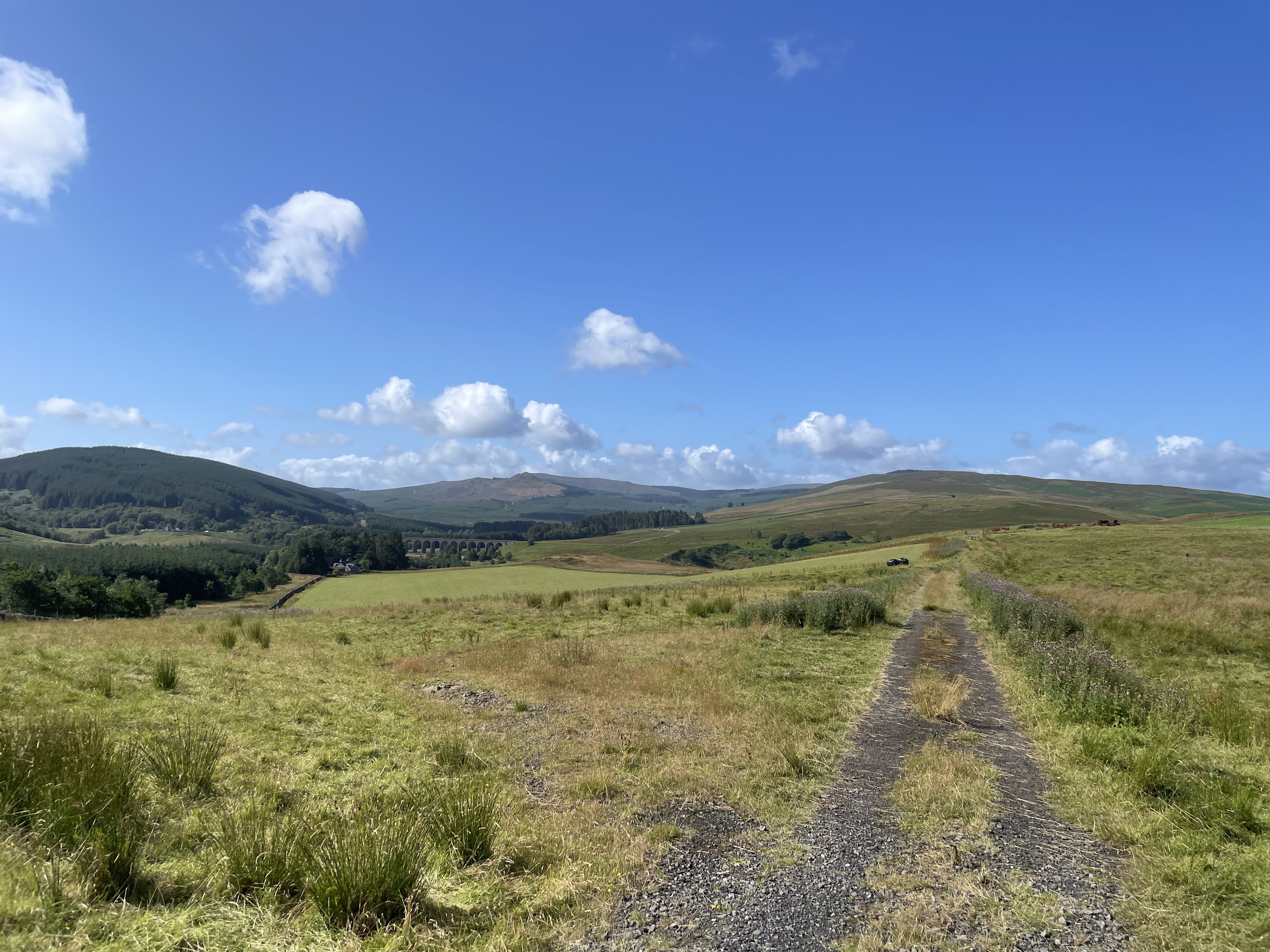 It is always best to start early, with the most light, and the quietest roads. Grabbing my kit off the windowsill of our holiday cottage I caught the eye out the window of Mo, one of the resident border collies. We stared at each other for a while, each wondering why the other was up. He spent most of the preceding week encouraging children to play fetch with him but after this face-off didn’t take much interest in me getting ready to go. The other advantage of starting while sleepy the first few hours tick my in a kind of alert drowse. So went by silent lanes and the occasional view of the board, blue River Tweed, marking the international frontier as far as Coldstream. Upstream of here the border changes angle and, without changing direction, I entered Scotland and stayed there until the last few miles of the route. There are often flags and signs considerably fancier than the drab, apologetic English markers when heading the other way – my favourite just said ‘Cumbria – Skid Risk’.