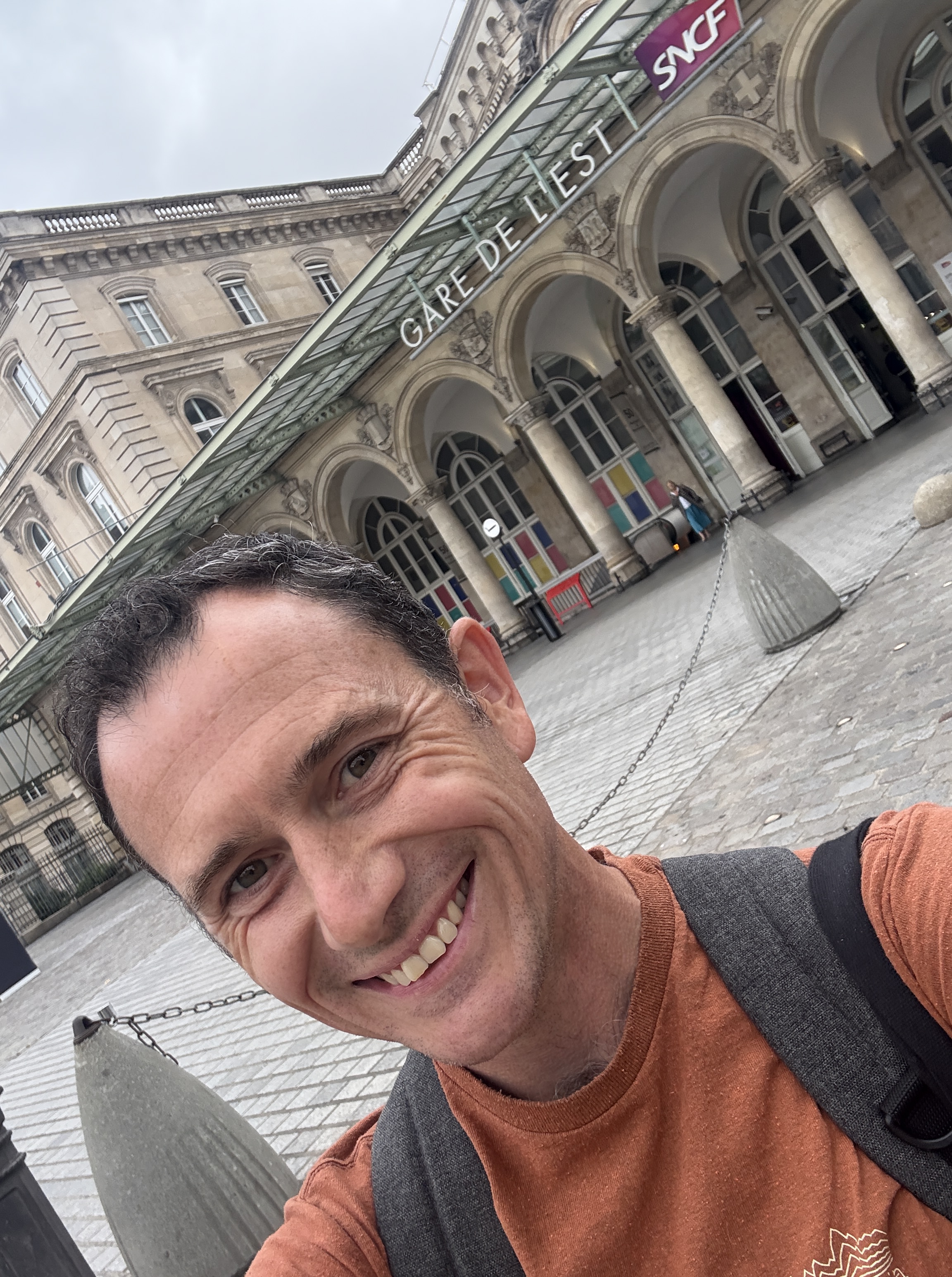 Nightjet 468 from Vienna to Paris, meanwhile, had set off and was catching up with my movements over the past 24 hours. It pulled in to Munich East just after 11pm with the memorable air of a service that meant punctual business and stuck to task. There were several of the disconcerting signal halts that were accompanied by the ventilation shutting off, both heating up and silencing the carriage. I had been unable to get a bed for the night on this train so was sitting up, in tight quarters with five others for company. One of these fellow travellers had talked without pausing for breath to his new friends for 30 minutes on boarding. Everyone went quiet when the provodnitsa turned the light out. Dog tired, I slept well and in tune with the up-tempo noise of the train until Mannheim, where we arrived at 2.11am. We were separated from the Belgium-bound portion of the train, a service I felt sure to hit delays weaving along the Rhine and along the Aachen – Liege crossing point of shit, and hooked up with a new loco. Then we sat there, with the usual suspects of a night train layover; chain-smoking train crew on the platform, an oddly-dressed passenger arguing and determined to board despite having unclear status, random shouting from the only partygoers left standing, and hissing and creaking from the train itself, otherwise hot and silent. My anxiety rose as time ticked on, but then we equally silently departed, picking up speed as we headed for the border. I woke again as we arrived in Strasbourg, possibly for a loco change, but we left there bang on time. At dawn we began to follow the Marne, flanked for sometime by champagne vineyards that seemed to be in the middle of harvest, passing Meaux, home of Brie. Another gut-wrecking trip for another time.